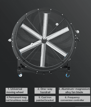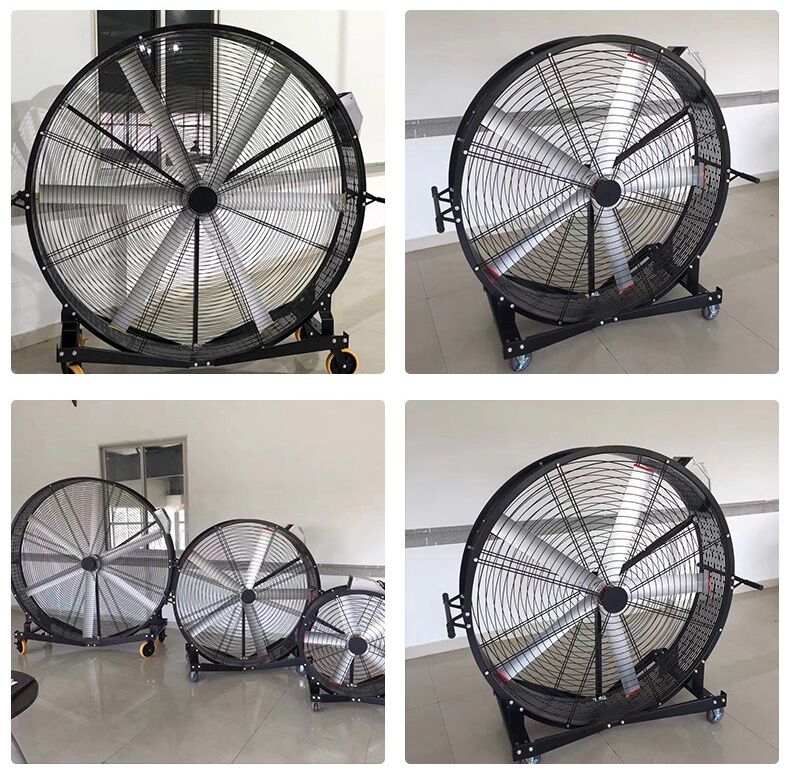 Large industrial mobile fans is a new type of floor industrial fan, around 2 meters diameter, can moved to anywhere you need. It also can adjust to different direction, applicable to any heavy industrial environment. It is widely used in warehouse, factory, workshop,gym, fitness room, indoor training ground etc.