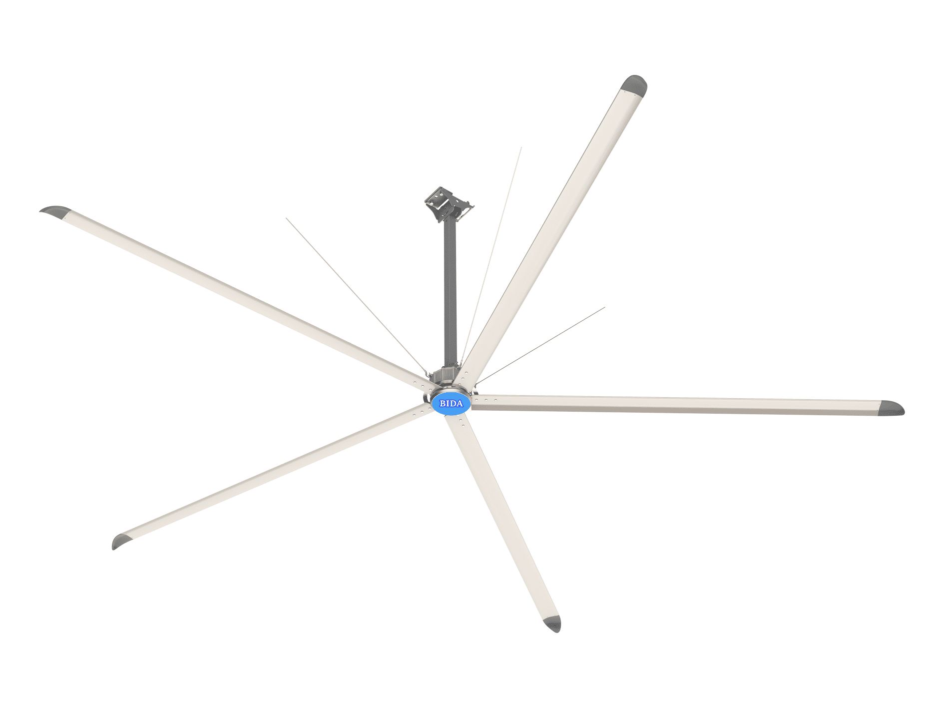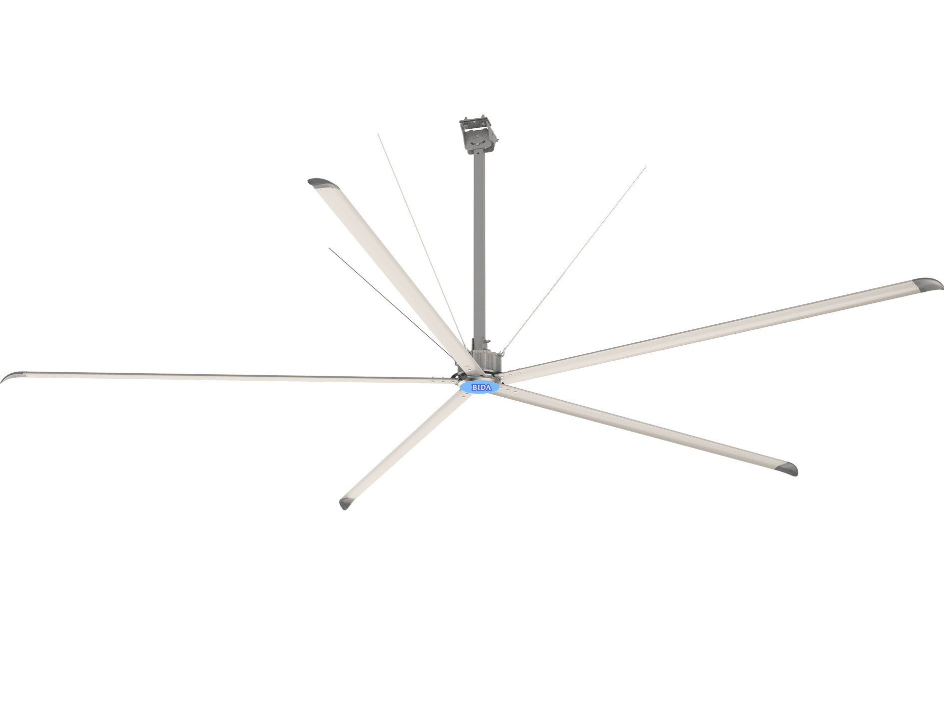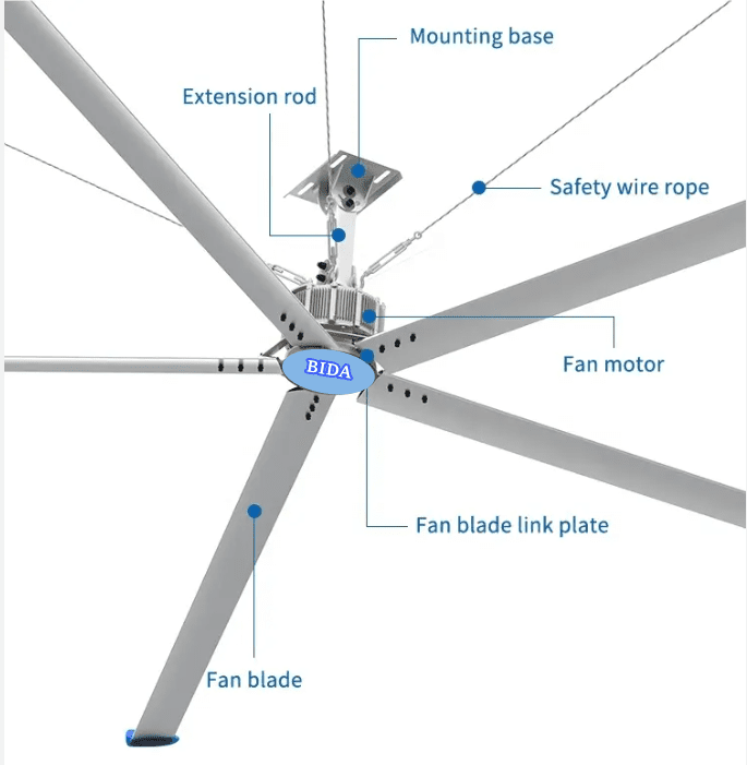 The efficiency of large size fan is several times that of other small size fans, which greatly saves installation labor cost and future maintenance cost. No other cooling system is as energy efficient as HVLS fans. In fact, studies have shown that businesses can lower or even eliminate the use of expensive air conditioning systems with an optimized HVLS ceiling fan solution.