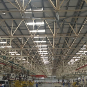HVLS FAN (High-volume low-speed) ceiling fans help reduce energy consumption, as the traditional designed fans are designed with high efficient and durable useful life in the agriculture and industry area. It is widely used for animal husbandry and ideal for large commercial buildings, manufacturing facilities, processing and assembly plates, warehouse or any other large indoor facility.